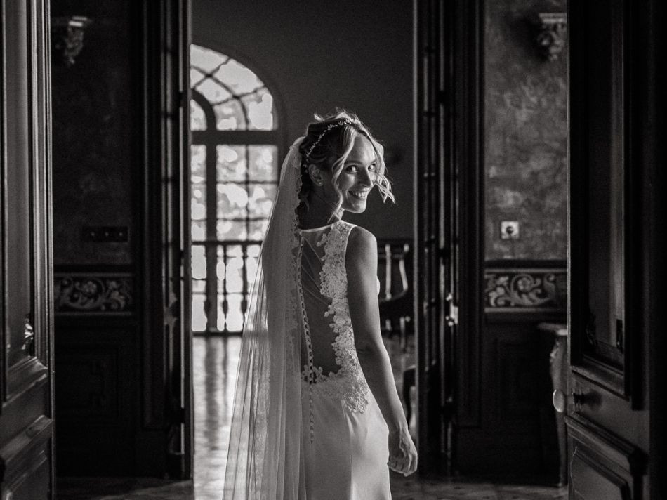 Comme tant d'autre Elise a du attendre un an pour dire oui ! report en 2021 et une mariée magnifique dans une robe fourreau, coiffée de la couronne Muse qui retenait un voile de tulle fin.