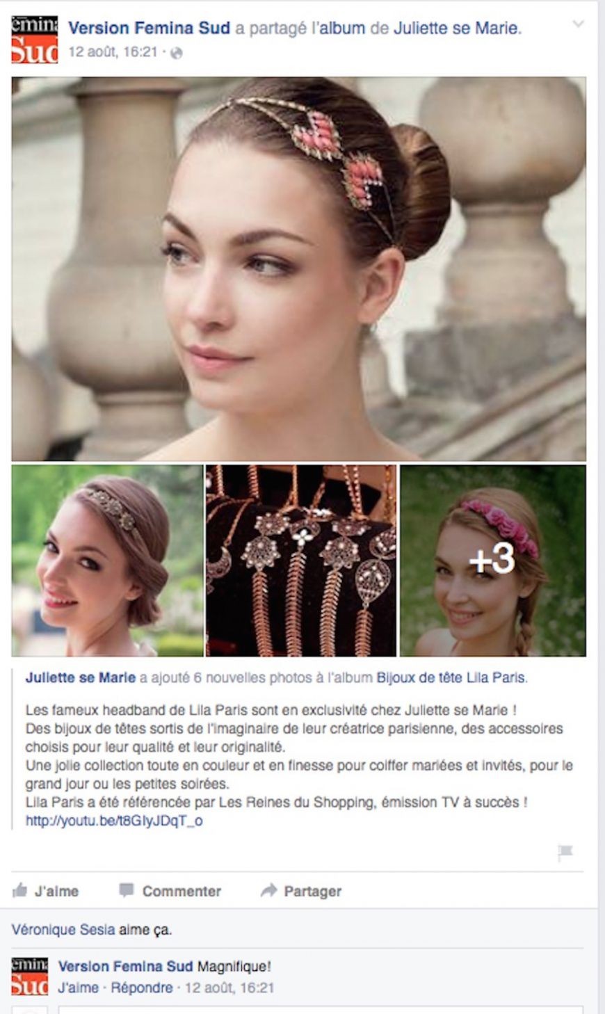 Merci à Femina Version Sud d'avoir relayé et aimé les headbands et bijoux de tête créés par Lila Paris et en exclusivité pour le grand sud, chez Juliette se Marie à Aix en Provence.