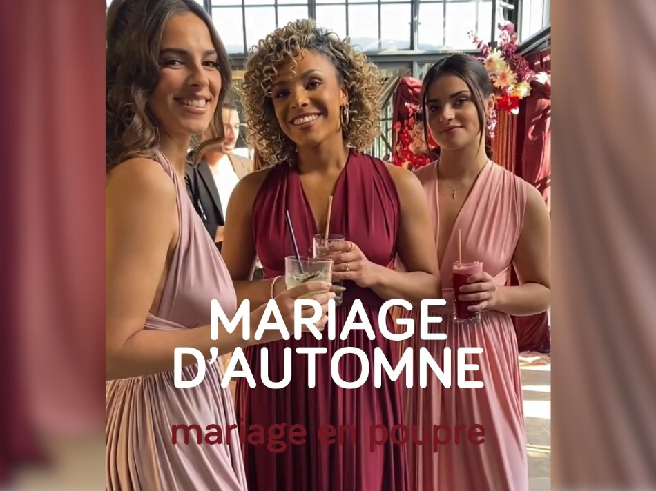 Nos robes multi-positions de demoiselles d’honneur, de témoins, de sœurs, d’amies, de mères… Mulberry, Vintage, Rubis, Champagne et Coral sont idéales pour incarner cette teinte avec style et caractère.