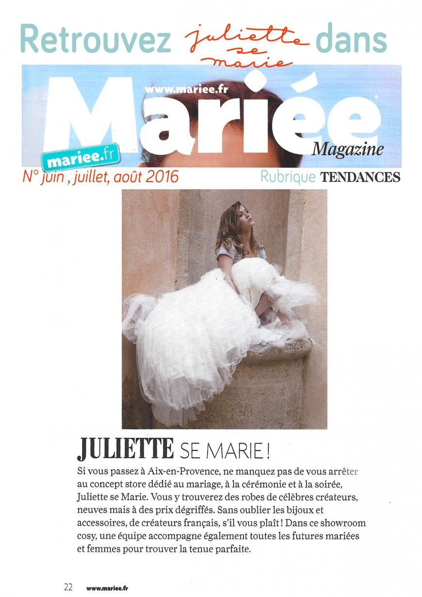 Juliette se Marie est fière d'être dans la rubrique "tendances" du Mariée Magazine de cet été.