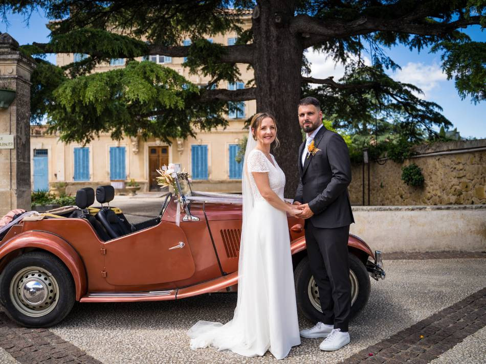 Sous le soleil du joli mois de mai, Sophie a dit oui dans une robe fluide de mousseline et guipure, avec un magnifique dos nu.