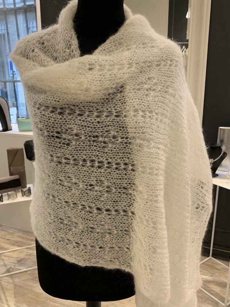 Etole tricotée main en points dentelle sécialement étudiés pour que sa légèreté et sa transparence laisse entrevoir la dentelle de votre robe !