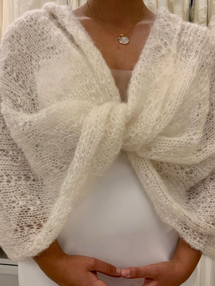 Grand tube tricoté main en point dentelle spécialement étudié pour que sa légèreté et sa transparence laisse entrevoir la dentelle de votre robe !