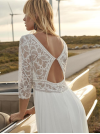 Robe en mousseline et dentelle, avec décolleté en V, dos ouvert relié au milieu et jupe fluide avec traîne en dentelle. Adaptée à toutes les silhouettes pour un confort élégant.