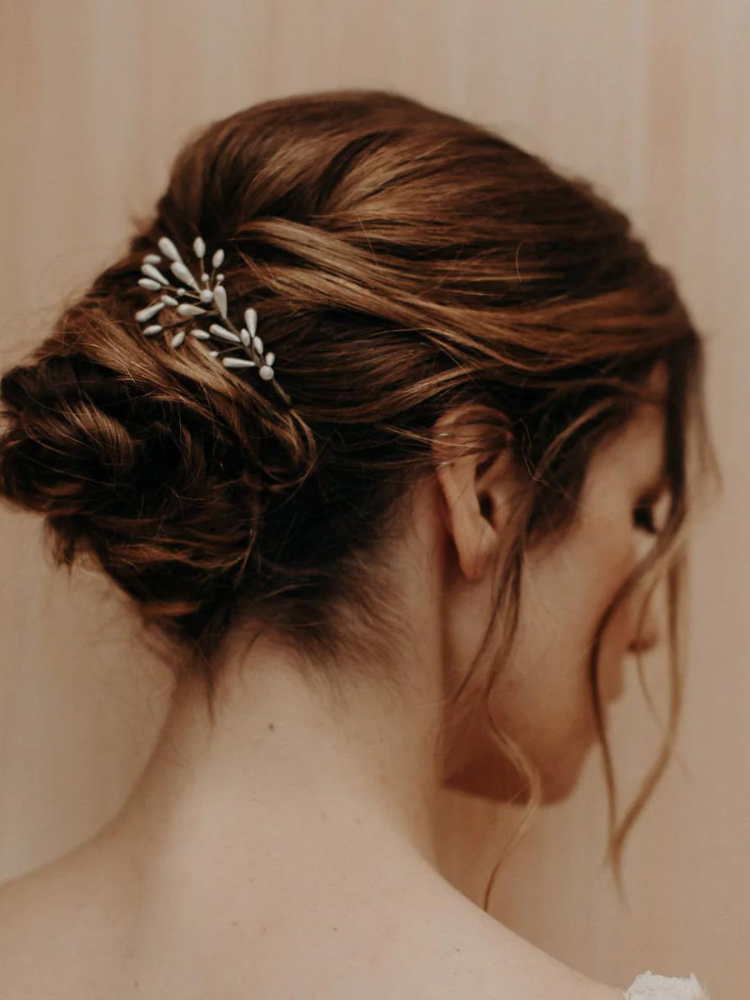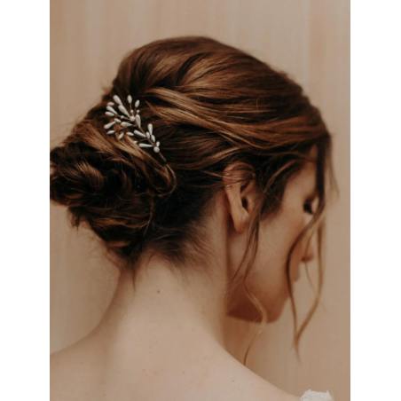 Petite barrette en fines étamines nacrées, à poser sur le côté ou sur un chignon