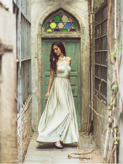 Robe longue multiposition, à nouer selon votre goût, votre silhouette, vos envies...