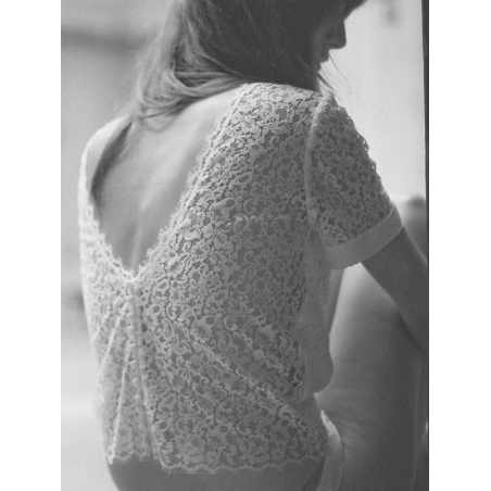 Un top tout simple mais terriblement bohème, petites manches, décolleté sage mais joli dos nu. A porter avec une jupe longue super fluide.
