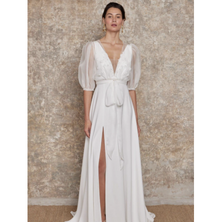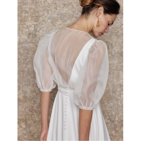 Boléro intemporel, parfait en toutes circonstances, à porter sur tous types de robes. Il accompagne délicatement votre robe, sa transparence et sa légèreté saura habiller vos épaules sans ôter la beauté de la robe ou de la dentelle en dessous. Le modèle présenté à la vente est sans les broderies. Possibilité de commander avec les broderies comme la photo (nous contacter)