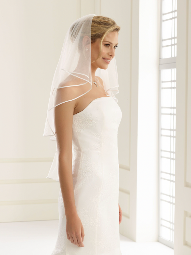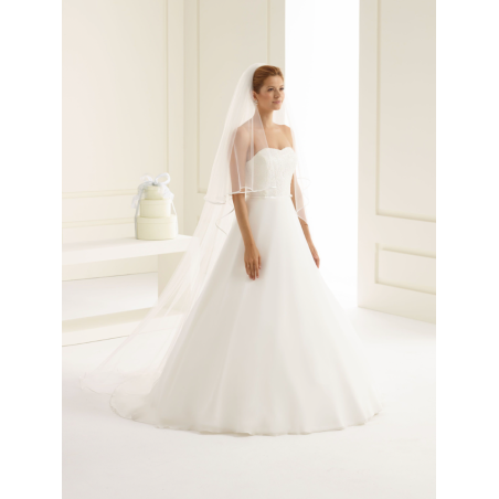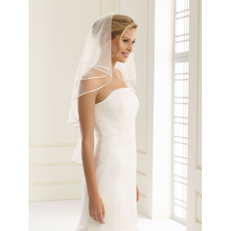 Il est bordé d'un liseré de satin. Ce voile saura habillé et compléter avec élégance toutes les tenues.