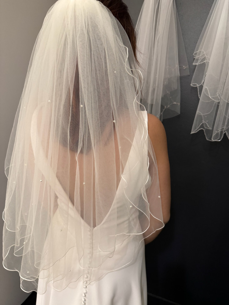 Il est parsemé de petites perles. Ce voile saura habillé et compléter avec élégance toutes les tenues.
