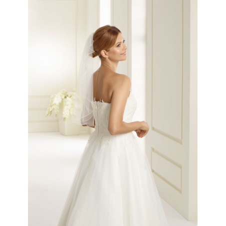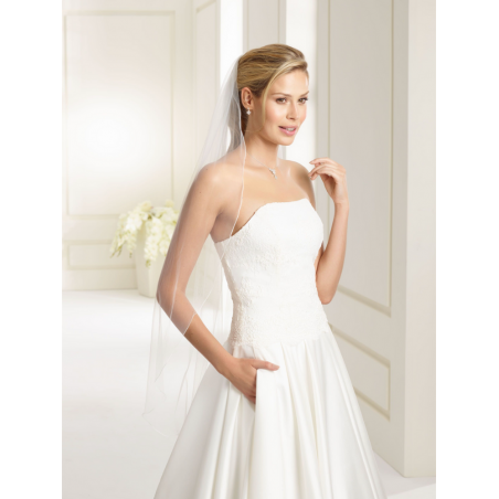 Il existe en différentes longueurs, afin de définir ensemble la longueur la plus appropriée à votre robe, n'hésitez pas à nous consulter par téléphone au +3 442 640 360