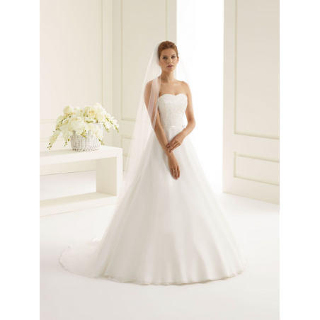 Il existe en différentes longueurs, afin de définir ensemble la longueur la plus appropriée à votre robe, n'hésitez pas à nous consulter par téléphone au +3 442 640 360